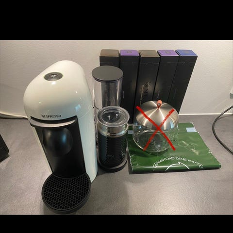 Nypris på Nespresso maskine: ca. 1300 kr.