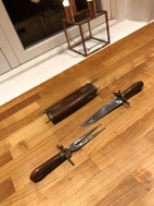 Andre samleobjekter, Forskærersæt - Indisk, Smukke træudskæringer og messingbeslag.