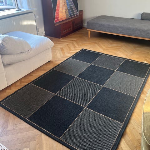 Super fint ternet tæppe i uld og grønne farver. Er brugt men stadig i fin stand.
