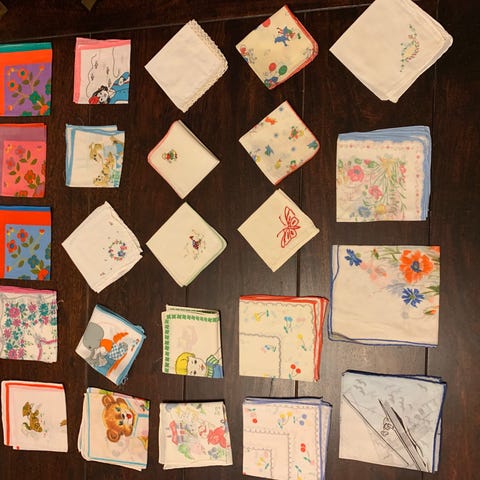 12 stk. med børnemotiv, 8 stk. med hæklede/orkerede kanter, 9 stk. øvrige og 1 stk. med julemotiv. Enkelte af børnemotiverne er lidt matte i farven, men ellers er alle i fin stand. Nogle er helt nye.