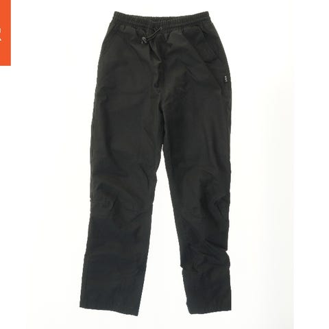 Regnbukser i sort med hvide vandrette striber. Bukserne har elastik i taljen og ved anklerne for at sikre en god pasform. Der er refleksdetaljer på benet for øget synlighed.