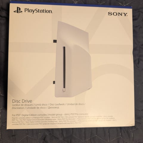PlayStation 5 Disk Drive for the Slim and the Pro versions. This was never used, the plan was to buy a PS5 Pro and use this in it, but I mostly use my PC now, so I ended up not buying the PS5 Pro. Doesn't have the box included.