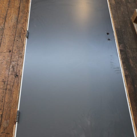 Indvendig dør med lås, nøgle og håndtag, træ beige farve