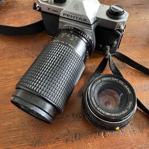Pentax K2 kamerahus i god stand. Normal bruksslitasje. Solid og pålitelig analogt kamera med Pentax K-fatning.