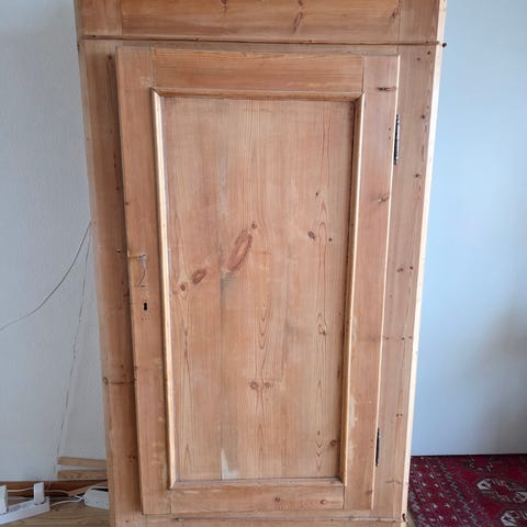 Skabet har 3 hylder der måler 88 x 35,5 cm og en skuffe nederst - meget rummeligt. Har også en bøjlestang i træ.