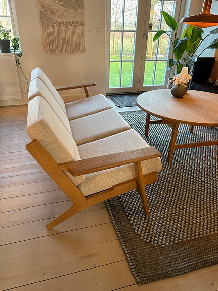 Hans J. Wegner GE375 lænestol i eg med nyt hyndesæt