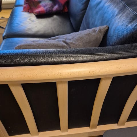 Sofaen kan laves om til en seng og sofaen er med opbevaringsplads. Den er i rigtig god stand.