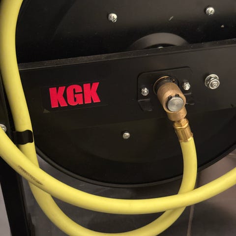 Flowconcept automatisk slangeopruller med 15 meter fleksibel PUR slange. kan håndtere op til 20 bar tryk. Produktet er designet til luftslanger og har en klassisk boksform.