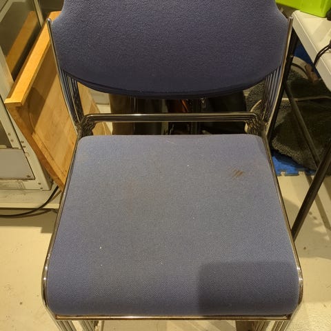 Seks stole med blåt uldbetræk