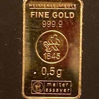 5 gram guldbar med ægthedcertifikat. Fra dødsbo