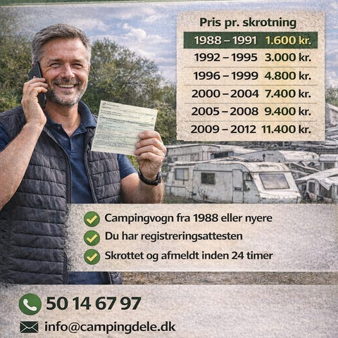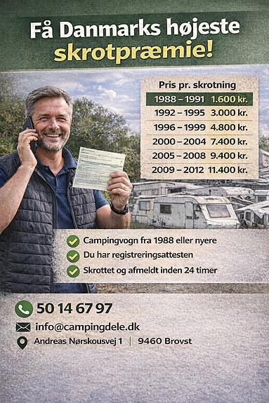 som en af de eneste i Danmark tilbyder vi skrotpræmie for din campingvogn og har Danmarks højeste skrotpræmier
