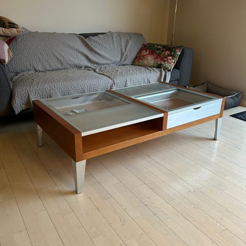 To sofaborde i massiv valnød og glas fra Hans Knudsens Inst