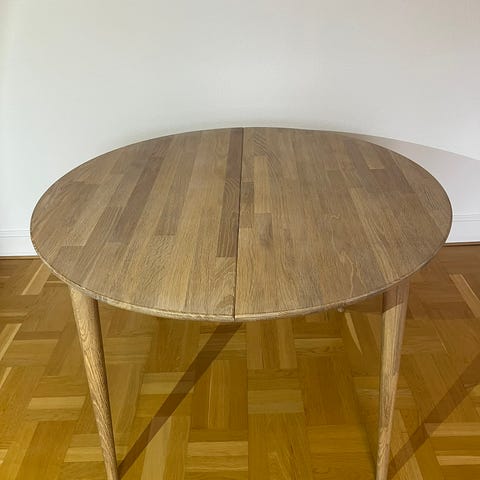 Den er blevet olieret løbende med ædeltræsolie og står fint.