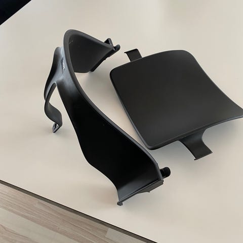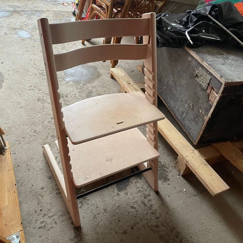 Stokke Tripp Trapp sortmalet højstol. Designet til børn med justerbar sidde- og fodplade for optimal komfort og støtte. Kan tilpasses barnets vækst og bruges ved spisebordet.
