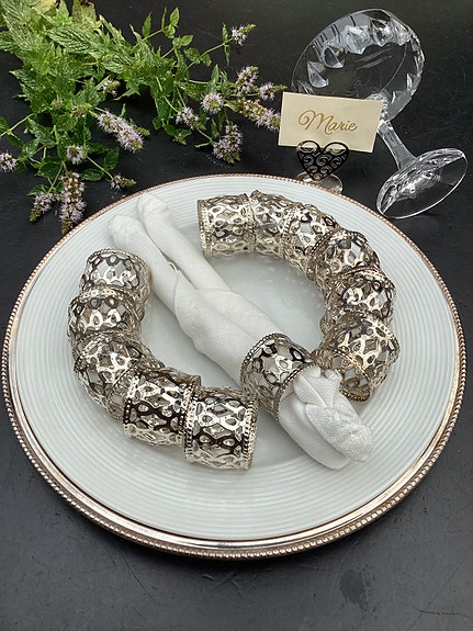 Fineste Servietringe i ‘guld’, med god tyngde. Har 14 stk. Sælges i SÆT af min 4 stk.