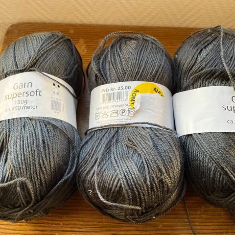 2 nøgler Garn 150 g grå akryl