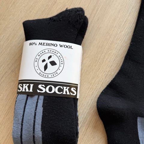kvalitets-skisokker fra Master. De er kun brugt i 5 dage på en enkelt skiferie og fremstår i rigtig god stand. De er naturligvis nyvaskede.