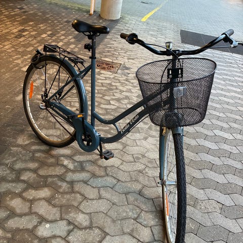 Sort damecykel med kurv og bagagebærer