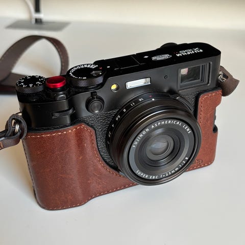 Der medfølger dæksel, original emballage/kasse samt kvittering. Der kan medfølge en Squarehood modlysblænde med glasbeskyttelse, thumb rest, soft release, rem og ekstra batteri for en merpris. (Billeder kommer snart)