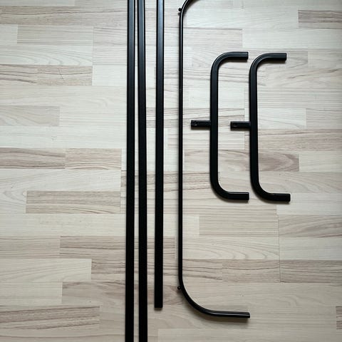 Bøjlestativ gratis til afhentning. Stangen der bærer bøjlerne mangler skruer, og hvilket blot på stativet. Se billede. Fungerer ellers