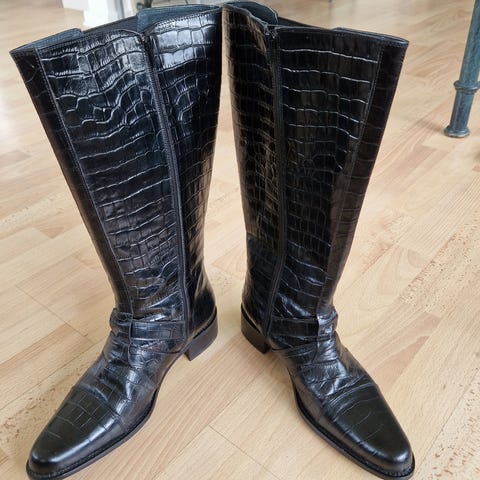 Meget blød i lækker læder. Lynlås hele vejen på bagsiden af støvlerne.