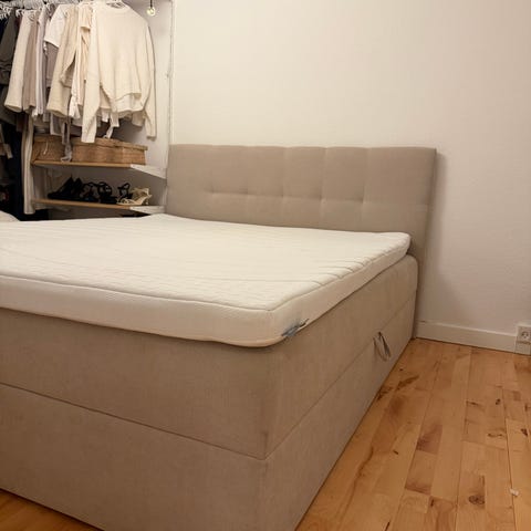 KONTINENTALSENG inkusiv gavl. Den har to stor opbevaringsrum som er meget brugbar. Sælges billigt ifht nypris. Fejler intet brugt få gange.