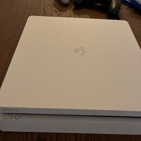 Sony Playstation 4 spillekonsol i sort farve.