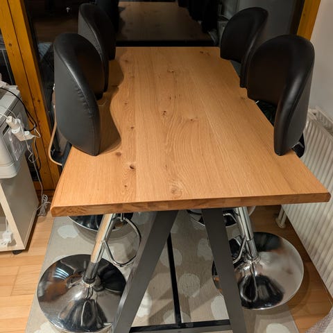 Spisebord massiv træ. Bordplade har mærker og trænger til en behandling.