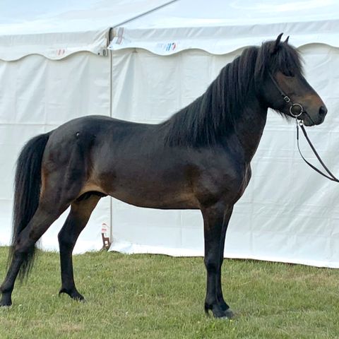 Han er efter Alexander fra Skelgården DK2015100645 og Frída frá Langholtsparti IS2005287445