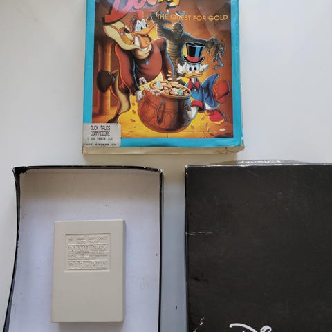 Spillet er baseret på DuckTales-serien og indeholder flere niveauer med forskellige udfordringer og opgaver. Inkluderer diskette og sort kasse med Disney-logo.