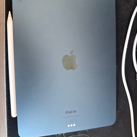 Apple iPad Air tablet med 64 GB lagerplads. Købt for 6000 i 2023, og keyboard for 2800 i samme ombæring. Så i alt får du Apple produkter for samlet værdi (2023) for 8800. Den er meget lidt brugt og fungerer som den skal.