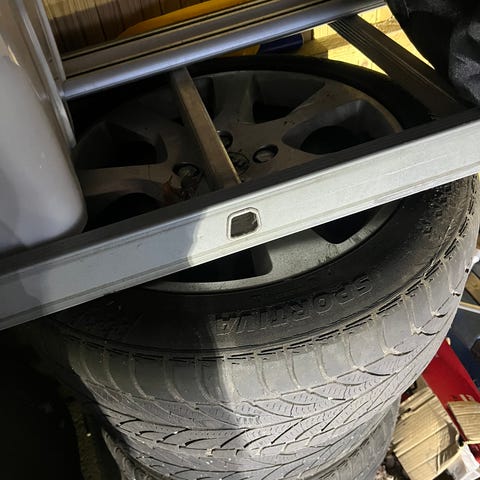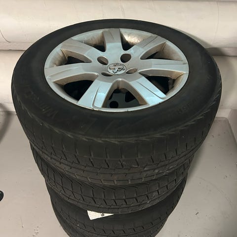 Der er påmonteret 4 vinterdæk, der dog er noget slidte, men stadig med mønster.