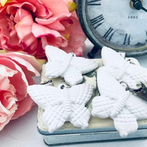 4 stk. farverige metalsommerfugle med kraftige magneter, der holder dugen på plads. Magnet sommerfuglene leveres i original æske og sælges samlet for 70,-kr.
