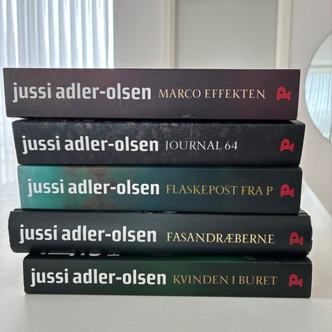 Serien indeholder titler som Natrium Chlorid, Offer 2117, Selfies, Den Grænseløse, Journal 64, Flaskepost fra P, Marco Effekten, Fasandræberne og kvinden i buret. Bøgerne er på dansk.