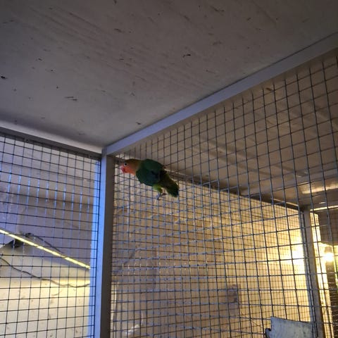 1 stk. Rødhovedet Dværgpapegøje. Unge der lige er begyndt at spise selv let at gøre tam.