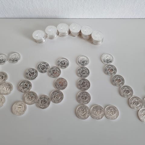 Byttes også til 9 stks andre tilfældige 1 ounces 99.9% sølvmønter.