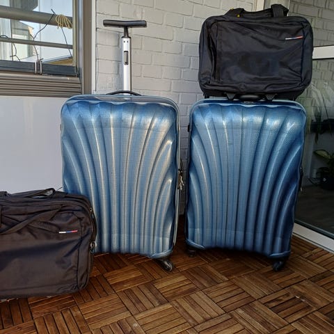 Brugt få gange. Åbner på midten, hvilket er ret smart når man skal løfte en åben kuffert, da der er håndtag i midten.