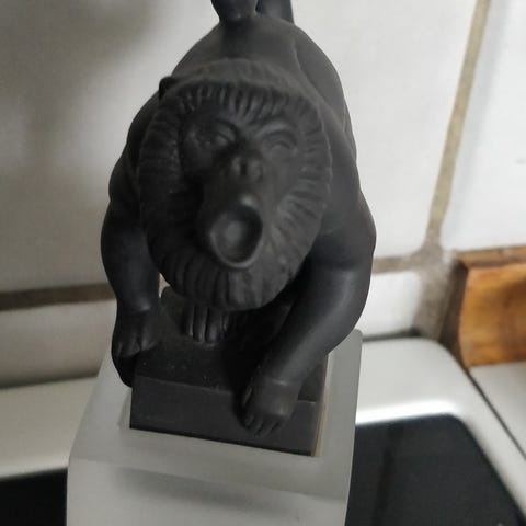 Royal Copenhagen Pia Langelund løvehovedabe figur i sort bisquit på sokkel