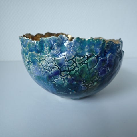 Keramik , Grethe Rugholm Andersen, motiv: 3 blomsterhoveder, Flot som dekoration til bord eller vindueskarm.