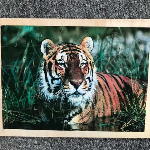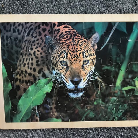 Flot og solidt træpuslespil med 25 brikker sælges.