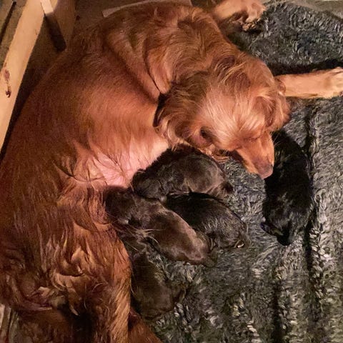 Vores vidunderlige Sonja på 4 år, har søndag d. 11/1 født hendes andet kuld hvalpe. 6 piger og 1 dreng 🩷🩷🩷🩷🩷🩷💙