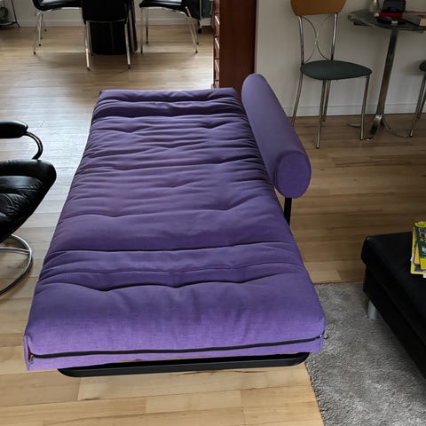 Sovesofa af høj kvalitet (nypris 10.000 kr.). Passer perfekt i hjem med små børn, da betrækket kan lynes af og vaskes ved 30 grader. Få ekstra soveplads ved at lægge ryglænet ned uden stor besvær, og du har nu en ekstra seng til to. Siden 1989 har Innovation Living dedikeret sig til design og udvikling af multifunktionelle sovesofaer af grundlæggeren, Flemming Højfeldt. Siden da er Innovation Living belønnet med flere designpriser. Bredde: 200 cm Højde: 86 cm Dybde: 98 cm Siddehøjde: 39 cm Sovemål: 140x200 cm