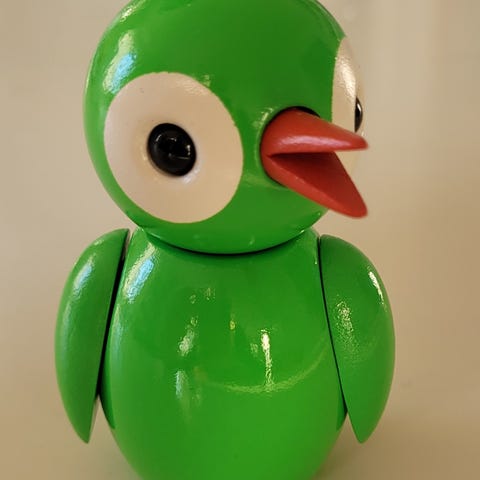 Den pinke fugl fra Spring Copenhagen. Design: Chresten Sommer. Hovedet kan drejes i mange positioner, drejelige vinger.