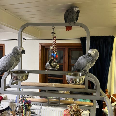 Et par søde papegøjer 1 hun 10 år gammel noget tam og 1 han alder kendes ikke lidt tam sælges sammen er meget glade for hinanden er ude med mulighed for at gå ind i Frost frit rum skal bruge nyt hjem da jeg ikke har tid til dem