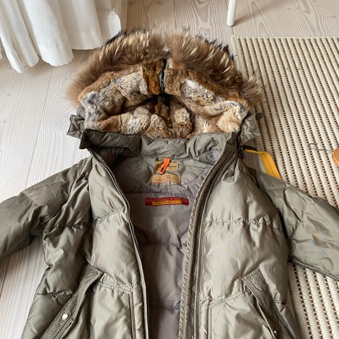 Parajumpers Vinterjakke i størrelse M til damer. Jakken er grøn og lavet af polyester/ dun/ fejr. Designet til at give varme og beskyttelse i kolde vejrforhold. Aftagelige kant. Brugt 3 x. Lille knappenåls hoved mærke på venstre lomme, svært at se. Rigtig flot stand. Smuk farve.
