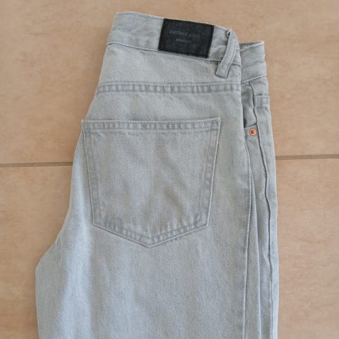 Gina Tricot Perfect Jeans Low Straight er damejeans i grå denim. De har størrelse 38 og taljemål W32. Jeansene er designet til kvinder og har en lav talje med en straight pasform.