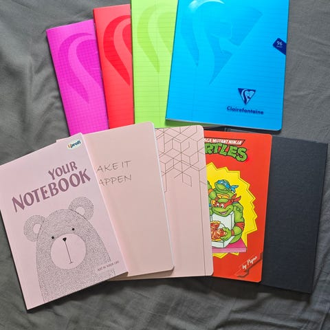 7 stk notesbøger i forskellige størrelse. Stk pris 20kr samlet pris 120kr
