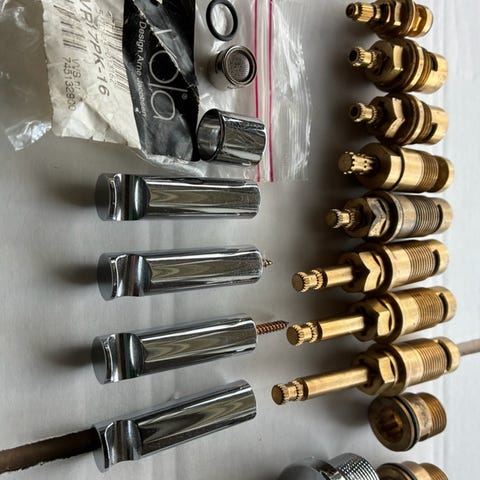 Pakninger mm., Vvs pakninger til vandhane eller lignende. Den måler 2,9 cm i den ene ende og 2,5 cm i den anden ende i udvendige mål. Indvendigt mål 2,0 cm. Se billeder. Har også noget tætning i tube til salg.