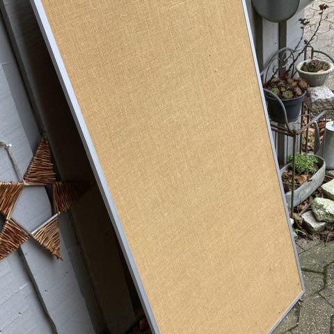 Flot opslagstavle med rødt hessian og fyrretræsramme. Fra engang i 80’erne.
