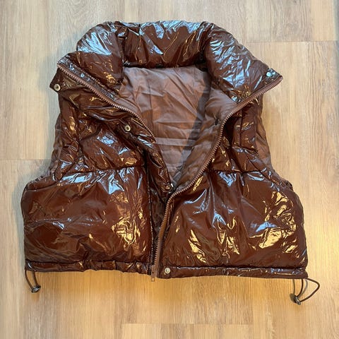 Rigtig fin kort fyldig vest fra Bershka med lynlås og en brystlomme med lynlås. Modellen er kort og passer egentlig både s-m-l. Fremstår som ubrugt. Se evt mine andre annoncer/tøj. Kom gerne og prøv.